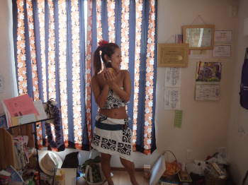 Mayu NapualaniはLeilaniの母に裾上げを頼みました。裾上げはご厚意で1着¥200でやってくれそうです。本当に助かりますね!