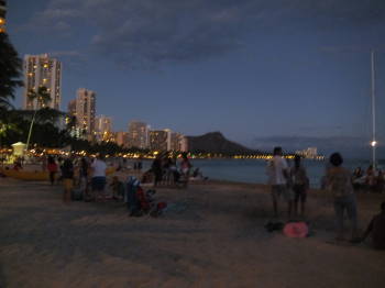 独立記念日の花火、Chieと二人でワイキキの海に浸かりながら見ました。Chieは貴重な体験をしたね!