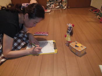 Aco先生に見守られながら筆記試験やってます!なんと、100点取りました!お見事!