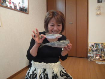 サバと鯵2匹プレゼントしました。魚を見ると、島を思い出すんだそうです。徳之島出身ですからね!
