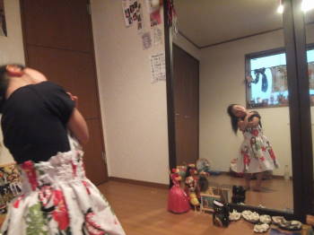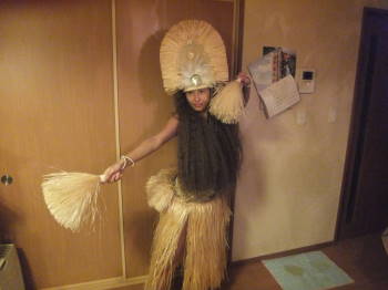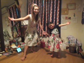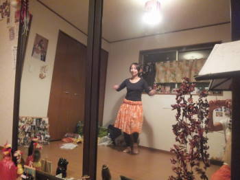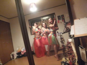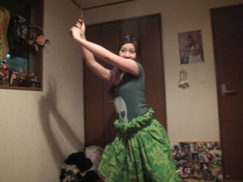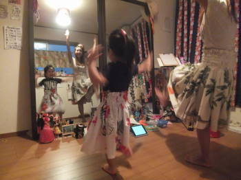 衣装を着てタヒチの練習。テンション上がりまくり。なぜなら、寝てないからです。。。あこ睡眠時間2時間。