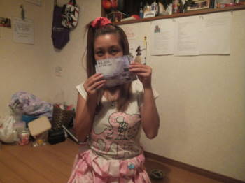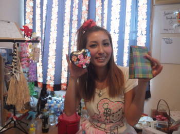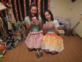 あさまさんからの差し入れ!まゆにはコラーゲンの飴を持ってもらい、Acoは忍者梅を!
