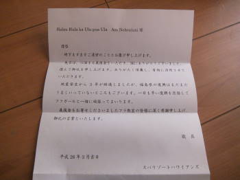 また、戻ってきてほしいですね。会えなくなるのがさびしくて、本当はもっと喜んであげたいのに、全然AlohaじゃないAcoになってしまいました。