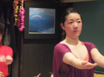 フラでは片足でもバランスが取れます。生徒さんたちにはまだそこが欠けているので、首が前に出ていたり、そのようなところをお勉強しましょう。