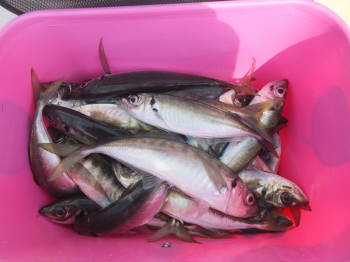 最高の61匹鯵、5匹サバ、しかも35センチ以上の良型です。