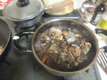 それと、今手が不自由なみよ 本日レッスンなので、昨夜イオラニが刺身を作って、私はサバの甘露煮作りました。