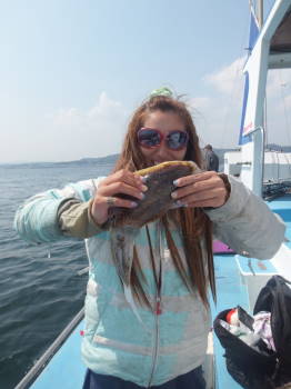 キス船に乗って、竿2本出して今日はハモノ釣りに挑戦。でも1発目はこれ。ホーボーのいとこですね。