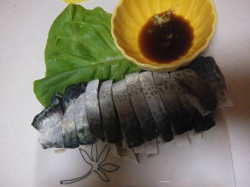 それと、〆サバ、小さいサバの天日干し2つ、カサゴのヒレ(ヒレ酒用)を持たせました。