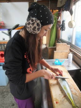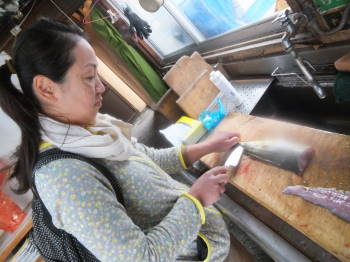 イナダの刺身を柵にして作ってありますので、ほしい生徒さんは火曜に取に来て下さい。