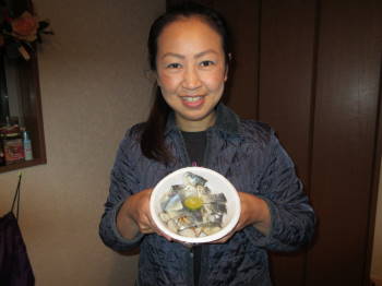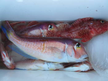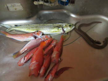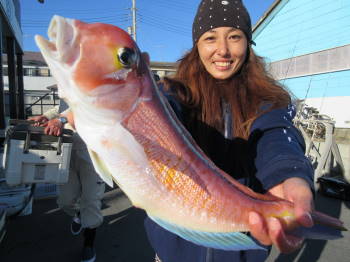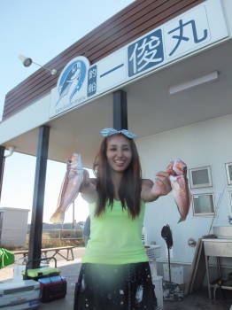 おめでたいので、エミリーと釣りに行った時に釣った真鯛を「おめでたい」と言う意味で。