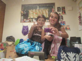 えみりーとレモンちゃん。みんなの頼んだドレス来ています。¥15000ぴったりでセミオーダーですが、すそ上げや税金、送料はオマケしてもらいました。
