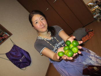 みんなにおすそ分けしていいってことでしたので、今日からシークワーサーをあげていきます。お鍋の季節なので、カボス代わりにしてもいいし、焼酎にいれてもいいし、嬉しいですね。南国の香り。