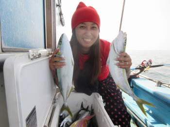 最初は、イナダ狙い。中々釣れず。これは出世魚なので、ワカシ(約30センチ程度)→イナダ(約45センチ程度)→ワサラ(約60センチ程度)