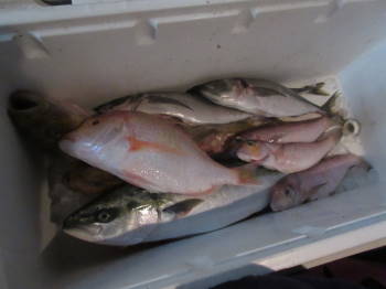 アマダイ3匹 鯛1匹 イナワラ1匹 アイナメ1匹 鯵8匹でした。
