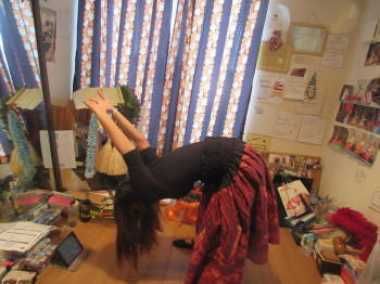 立てるけど足がそこまで上がりませぬ。でも、これも難しいんですよ~!あっ!髪が短く見えますね!長いままです。