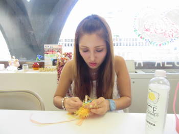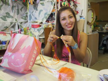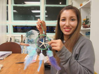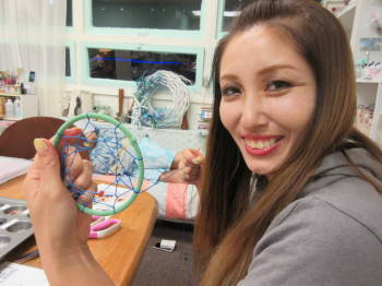 くみちゃんに誘われたドリームキャッチャー作り。なかなか楽しい。