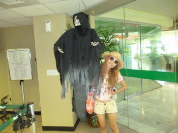 朝からお出かけ~!DFS横の喫煙所前にて。
