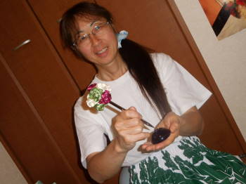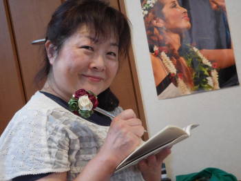 くみちゃんとの出会いは昨年の7月のHawaiiでした。ちょこちょこ顔を出す「Mea aloha」と言うリボンレイ教室に、その日もたまたま行きましたところ、クミエが来ていました。