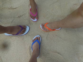 パープルはククイ、ブルーはマラマ、オレンジはカプア、ピンクはAcoの島草履です。