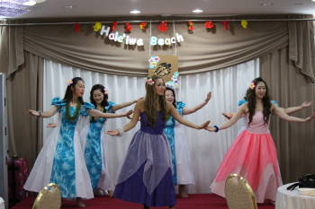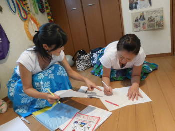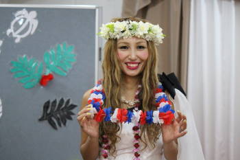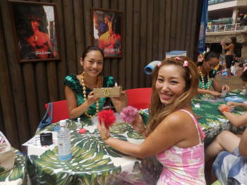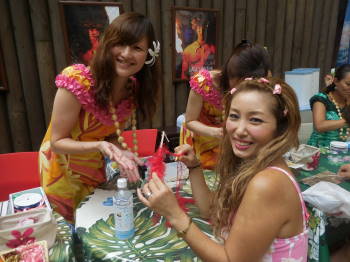 ショーを見るのもさることながら、元フラガールが教えるシュシュやリボンレイ作りに毎日参加!