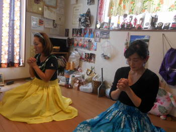 Let's Hula!ステージ近いので、自主練。おしゃれもね!