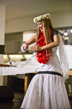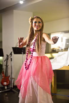ものすごーく早くにソロになった41期生のプアリリア樹さん。いっちゃんは、リボンレイ教室の指導にあたっています。引退した元フラガールが教えています。