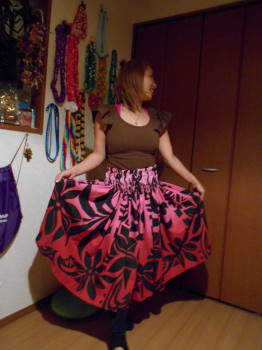 そーいえば、Likoがついに、7月のAcoのハワイの時に、皆からお金を集めて、ファブリックマートで買ってきた、生地でパウスカート完成しました。