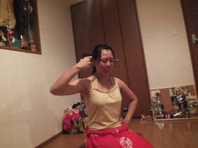 AsamiとレッスンがかぶっていたChie!スーサイドしようとしていました。嘘です。カウガールソングを踊る時に使用するおもちゃのガンです。
