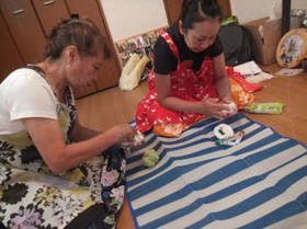 二人そろって針と木綿糸忘れ。エミリーに至ってはエプロンも忘れる。そして、来る前に家でノートを必死に見ながらレッスンしていたせっちゃんなんて、ノート忘れ。今みんなホイケ前で仕方がないですよね!