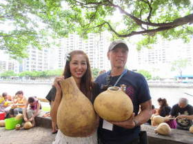 ひょうたん=Ipu を2つくっつけて作ります。まずは表面をきれいにします。アラワイ運河の水で洗いました~!