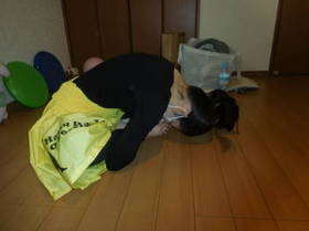ゆみか、惜しい!もうちょいで、頭が床につくねー!