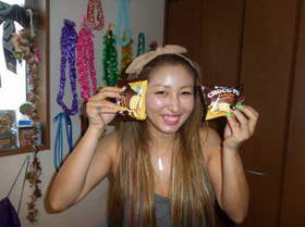 香ちゃんとチカ☆香ちゃんが手に持っているのは、チカからみんなへ。コスコのお菓子です。